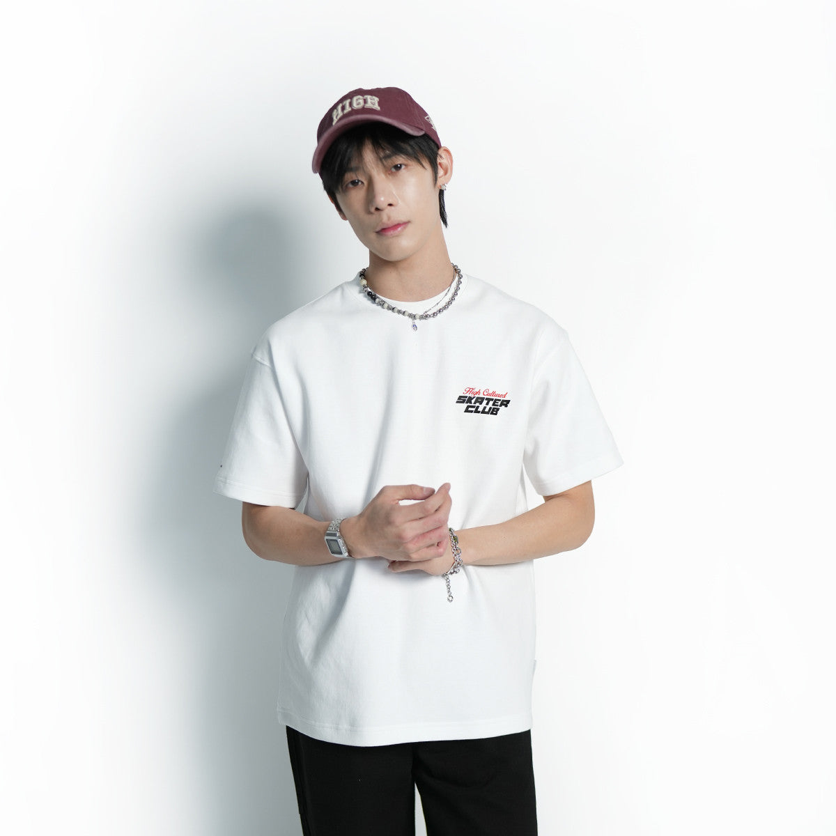 Stay classic with the High Cultured Skater Club Hiro Loose Tee. The high-end rubber printing on the front assures a clean yet distinctive finish for this piece, while the photo print artwork at the back uses colors and visuals inspired by skate aesthetics and a street lifestyle to deliver a punch of visuals. This tee moves effortlessly with you perfect for layering, skating, or just keeping it casual.